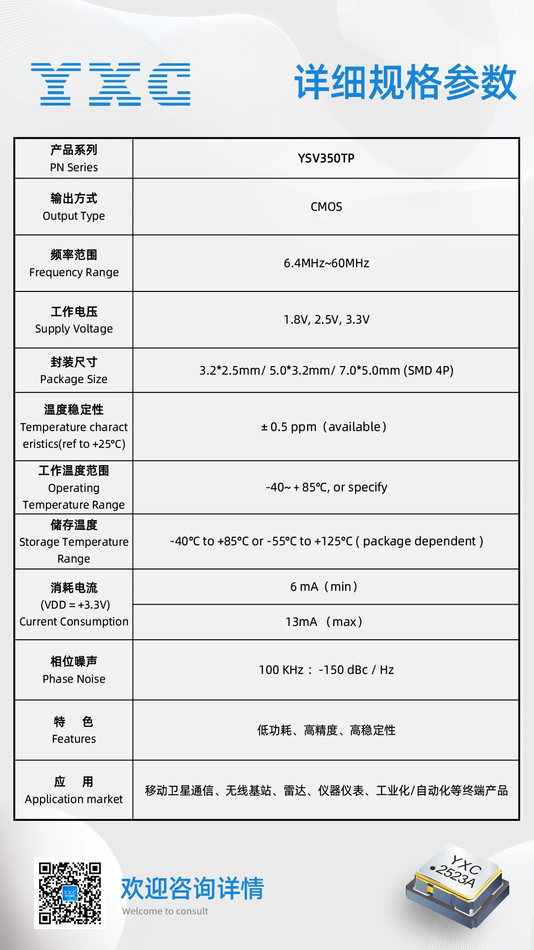 YSV350TP系列壓控溫補(bǔ)晶振以其低功耗、高精度和高穩(wěn)定性的特點(diǎn),完美契合了移動(dòng)衛(wèi)星通信、無(wú)線基站、雷達(dá)、儀器儀表和工業(yè)化/自動(dòng)化等終端產(chǎn)品市場(chǎng)的需求。