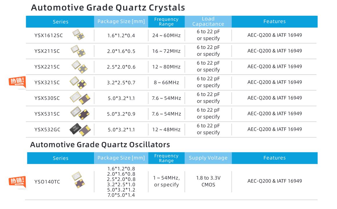 作為本次展會(huì)的參展方,揚(yáng)興科技致力于為汽車電子應(yīng)用提供多樣化的產(chǎn)品組合。我們的車規(guī)級(jí)晶振已通過(guò)AEC-Q200認(rèn)證,并符合IATF 16949汽車行業(yè)質(zhì)量管理體系。無(wú)論是車載娛樂(lè)系統(tǒng)、智能輔助駕駛系統(tǒng)(ADAS),還是車聯(lián)網(wǎng)(C-V2X),高可靠性的時(shí)鐘信號(hào)確保各系統(tǒng)協(xié)同工作,提高安全性和乘客體驗(yàn)。YXC車規(guī)級(jí)晶振將助力汽車電子提供全套車規(guī)級(jí)晶體晶振選型方案,為汽車半導(dǎo)體貢獻(xiàn)力量。