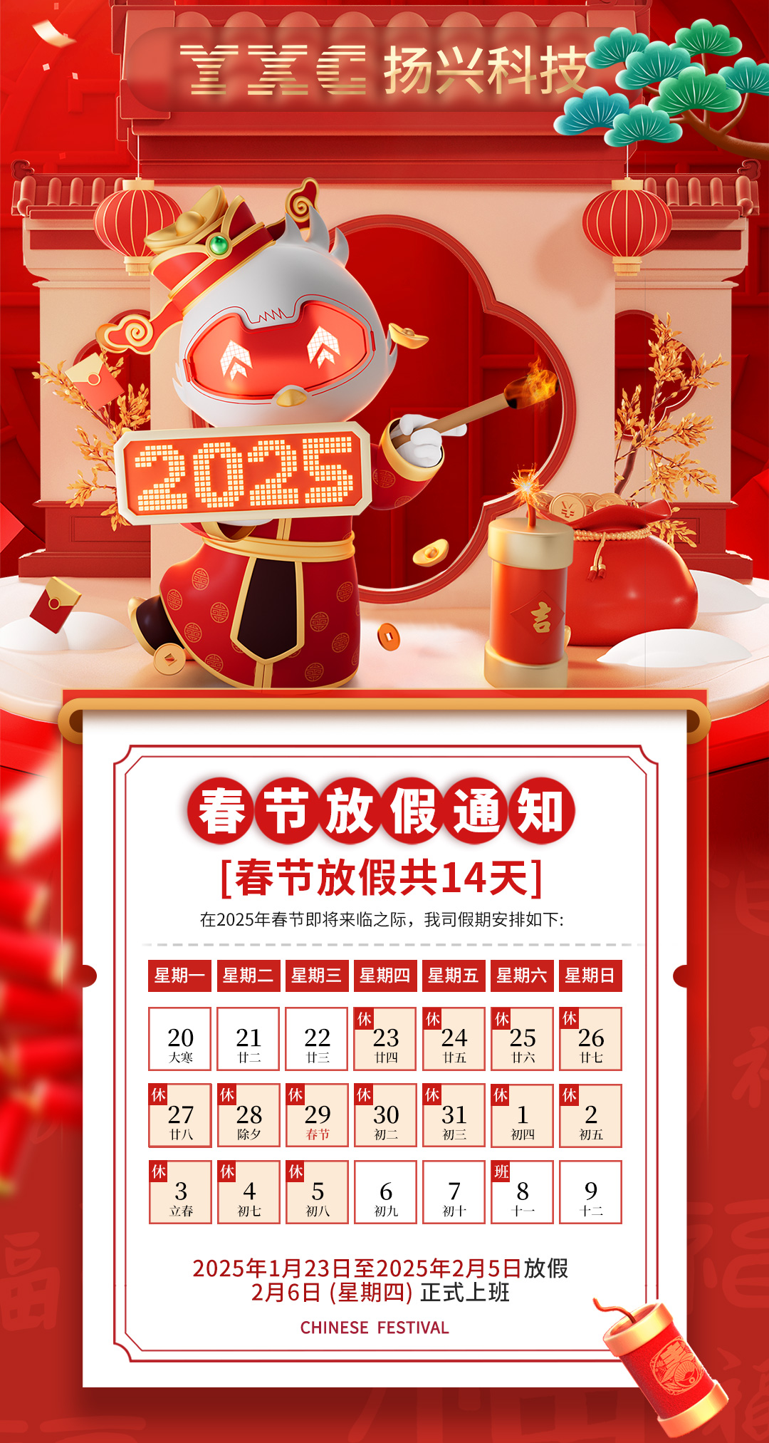 YXC揚(yáng)興科技 | 2025 春節(jié)放假通知