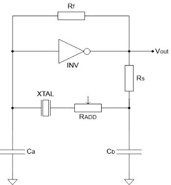 電路中的負(fù)電阻可以通過(guò)在晶體上串聯(lián)一個(gè)電位器來(lái)測(cè)量,如圖1所示。電位器的電阻需要增加,直到晶體停止振蕩——這個(gè)電阻值標(biāo)志著R ADDmax。使用 R ADDmax 和晶體的最大 ESR,可以計(jì)算負(fù)電阻和安全系數(shù)。