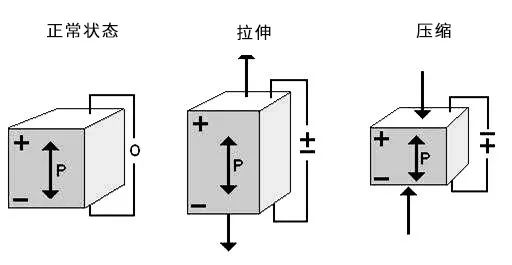 正壓電效應(yīng):當(dāng)沿晶體的電軸或機(jī)械軸施以張力或壓力時(shí), 就在垂直于電軸的兩面上產(chǎn)生正、 負(fù)電荷, 呈現(xiàn)出電壓。