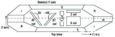 音叉32.768KHZ晶體頻率溫度曲線為二次拋物線,隨著工作溫度偏離常溫25℃越遠(yuǎn),溫漂也隨之變大,-10℃~+60℃其溫漂達(dá)到將近50ppm,如按工業(yè)級(jí)-40℃~+85℃計(jì)算,溫漂高達(dá)151ppm,難以適應(yīng)工業(yè)級(jí)工作溫度范圍的電子產(chǎn)品,對(duì)其進(jìn)行溫度補(bǔ)償也較為困難,因此,市面上針對(duì)32.768KHZ的溫補(bǔ)晶振很少,且價(jià)格極為昂貴。對(duì)于一般的消費(fèi)類電子行業(yè),如需工業(yè)級(jí)-40℃~+85℃,且溫度頻差控制在±30ppm以內(nèi),使用普通音叉型32.768KHZ晶體,是無(wú)法滿足要求的。然而,如果能將晶片切型改為AT切的切型,那么工業(yè)級(jí)溫度頻差控制在±30ppm以內(nèi)將不成問(wèn)題。下面來(lái)了解一下AT切32.768KHZ鐘振是如何實(shí)現(xiàn)的。