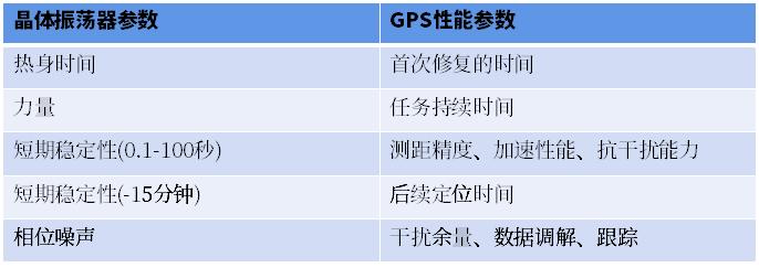 說到汽車應用中的晶振,你不能忽略GPS。GPS可能是精度要求最高的汽車系統(tǒng)之一,晶振的許多重要參數(shù)在很大程度上影響GPS的精度。下表顯示了晶振參數(shù)與GPS性能參數(shù)的對應關(guān)系。