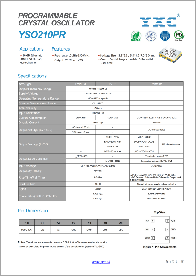 針對交換機(jī)晶振應(yīng)用需求的高穩(wěn)定性、高頻/偏頻、低抖動、低相噪等特點,推薦:【YXC可編程石英振蕩器YSO690】【YXC差分可編程振蕩器YSO210PR】