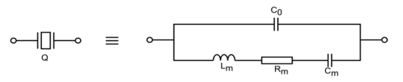 石英晶體是一種可將電能和機械能相互轉(zhuǎn)化的壓電器件,能量轉(zhuǎn)變發(fā)生在共振頻率點上。它可用如下模型表示