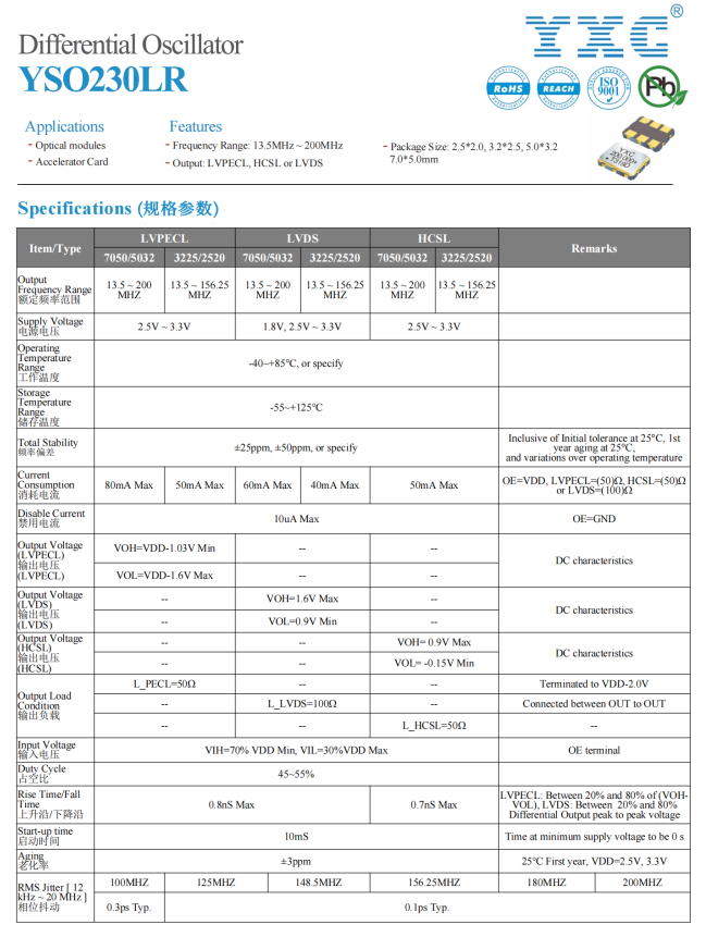 · 高精度、高穩(wěn)定性:提供FS±25ppm的超高精度差分晶振