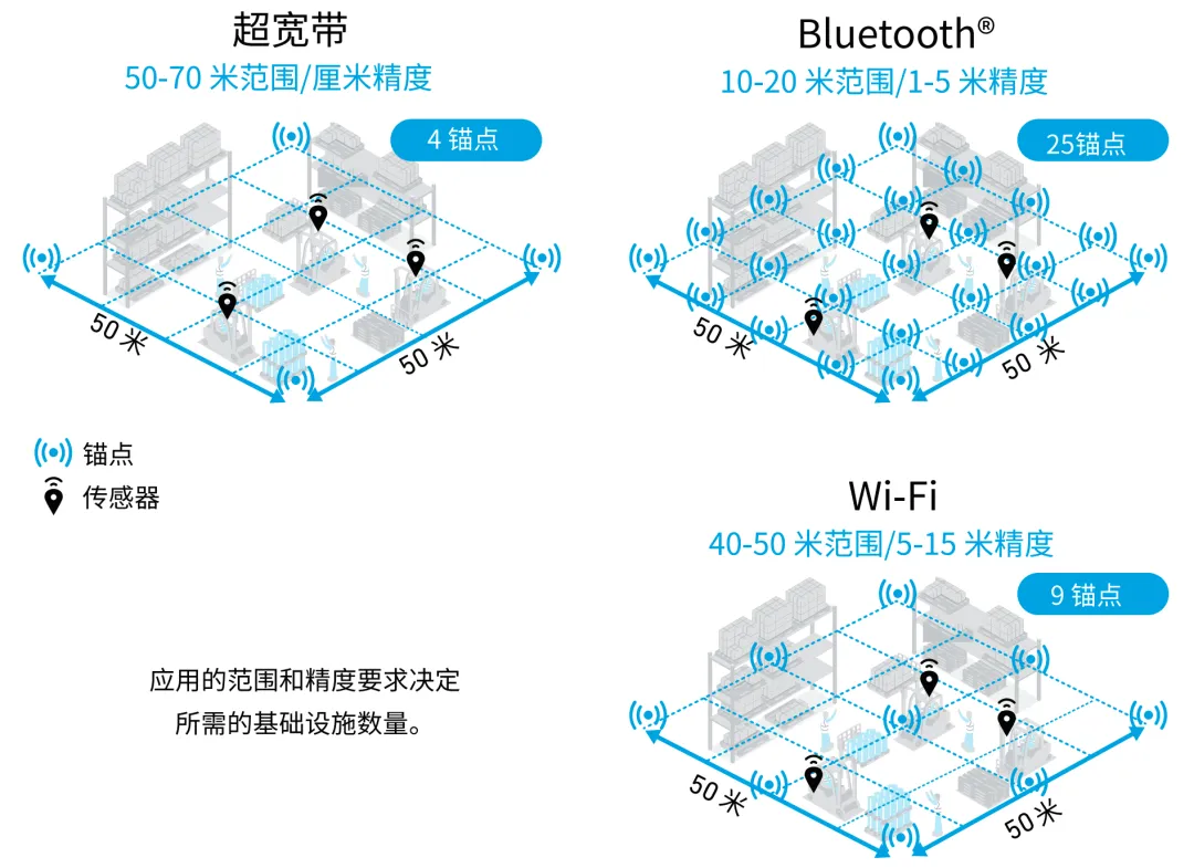 AGV(自動導引車)精準導航、重要資產精準追蹤、人員與設備防撞預警。